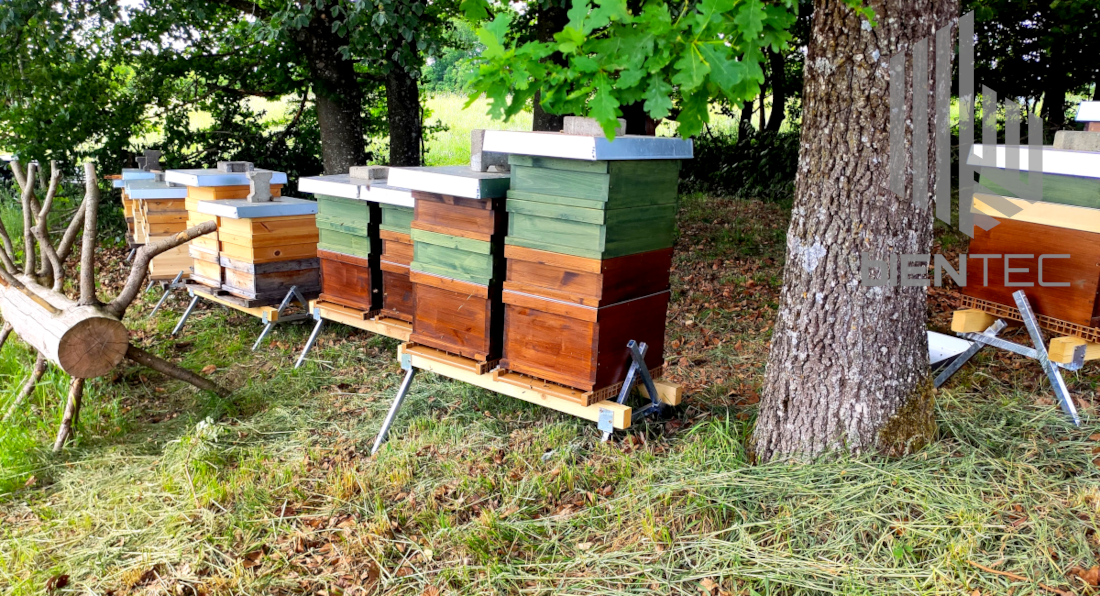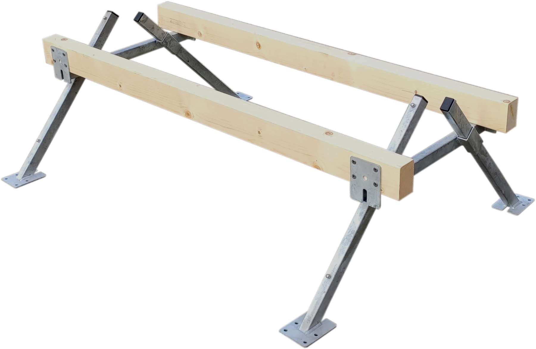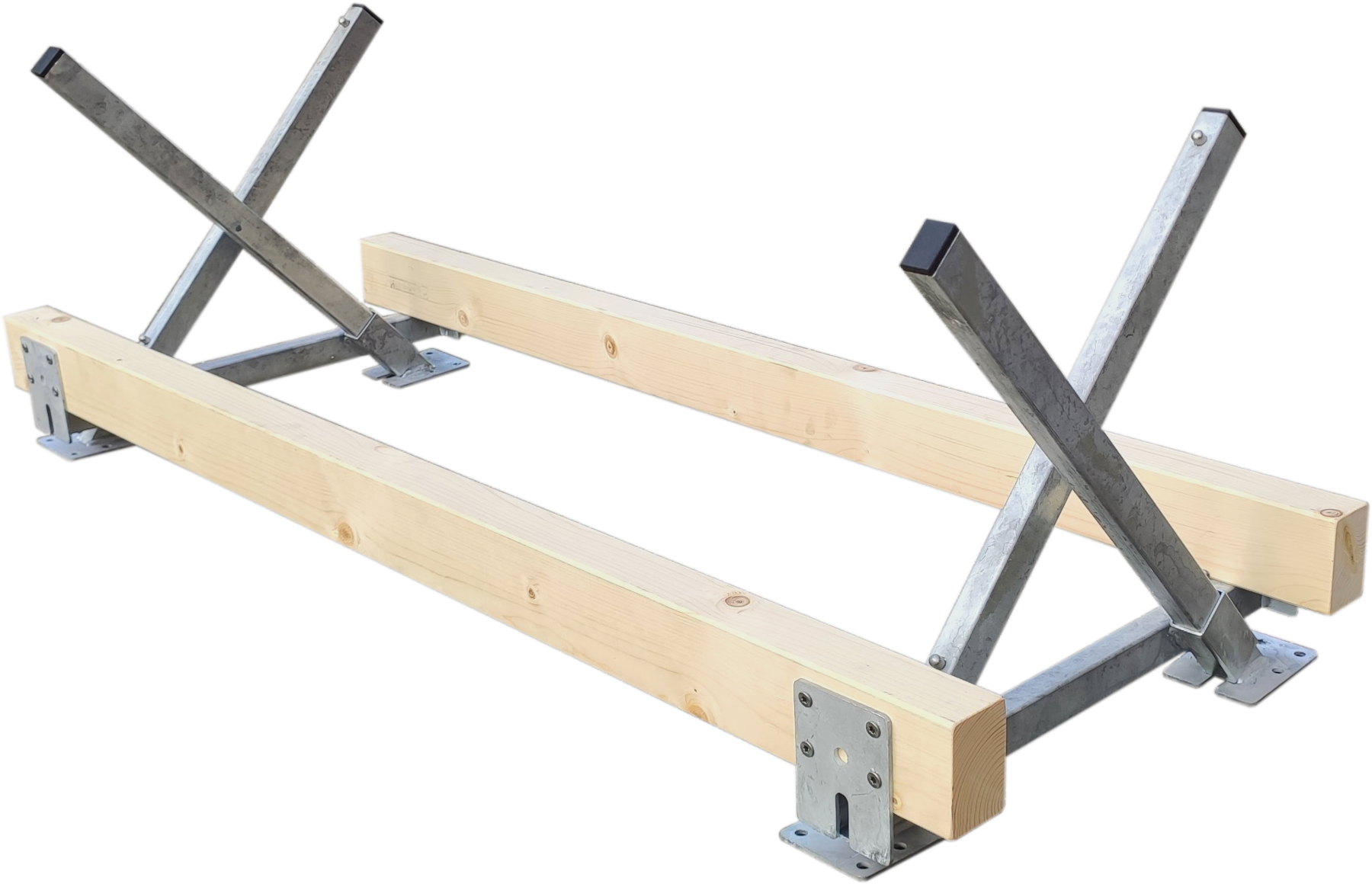 Je nach Länge und der Dimension der Holzbalken können mehrere Beuten getragen werden. Bei mehr als 4 Beuten, empfehlen wir einen weiteren Ständer in der Mitte anzubringen.